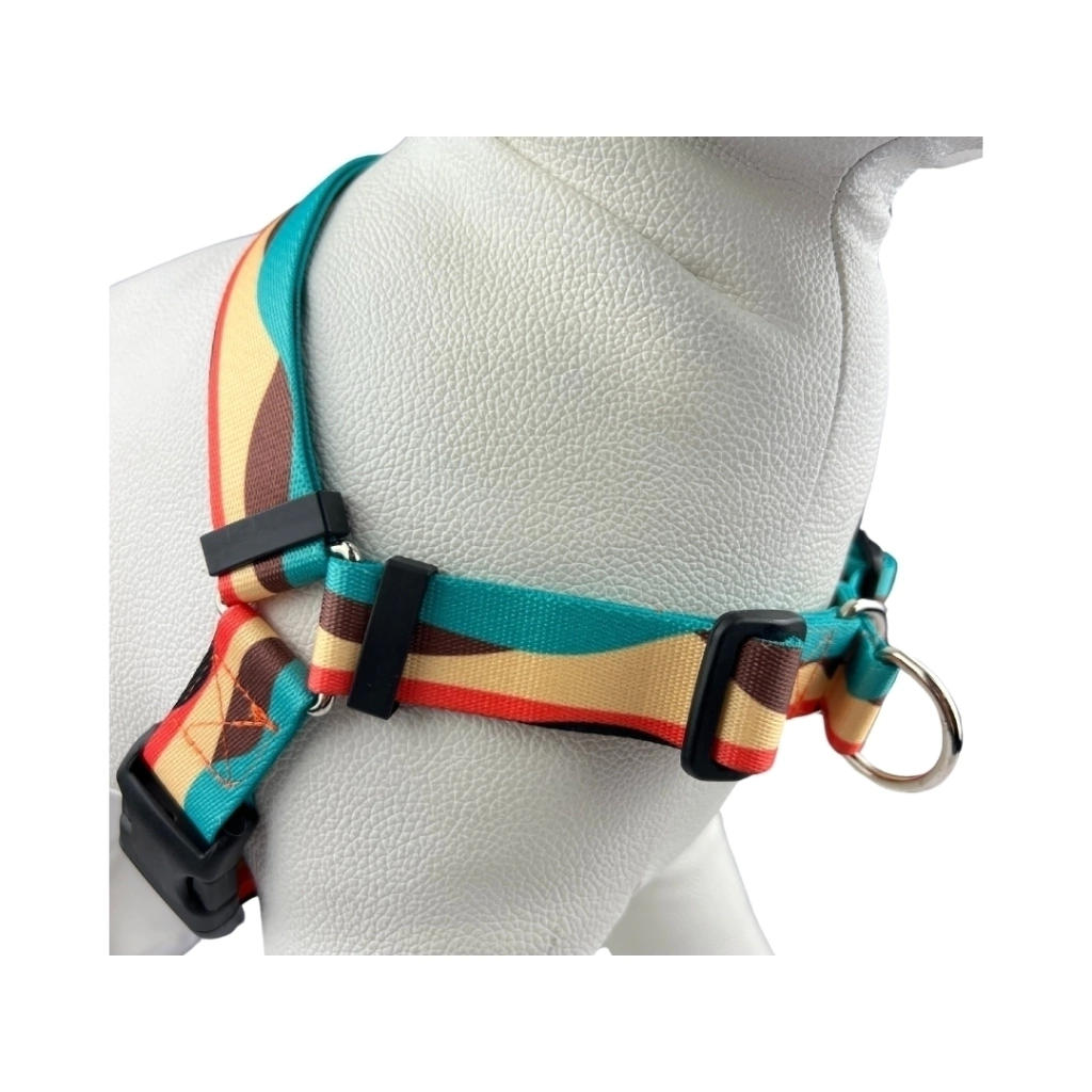 Ahh, e para completar, vem acompanhado de uma guia de 120cm de comprimento e 1,5 cm/2,5 cm de largura, com mosquetão 360 graus com fechamento em rosca. Disponível nos tamanhos P com fitas de 1,5 cm de largura, e nos demais tamanhos com fitas de 2,5 cm.
